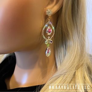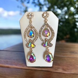 Stunning AB Aurora Borealis Crystal Drop Earrings Rhinestone Dangle Statement Earrings!