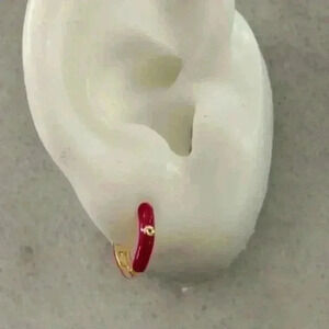 Silver Crystal Paved Heart Hoop Huggie Earrings