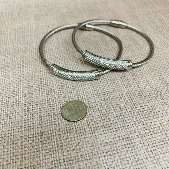 Silver Crystal Plus Size Magnetic Clasp Bangle Bracelets Set of 2