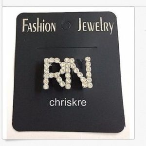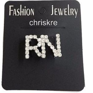 Silver Crystal RN Nursing Pin Brooch Nurse