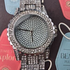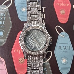 Elegant silver watch with crystal embellishments. Perfect for adding sparkle to any outfit.