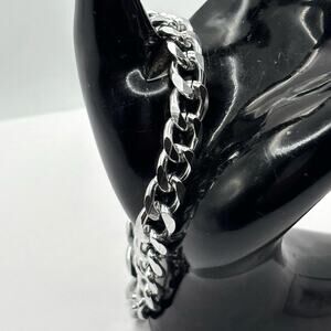 Silver Cuban Link Chain Men's Bracelet. This retro jewelry piece fits 7 in wrist.