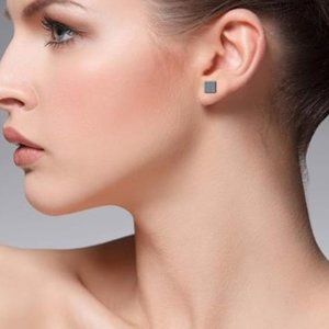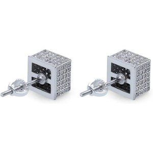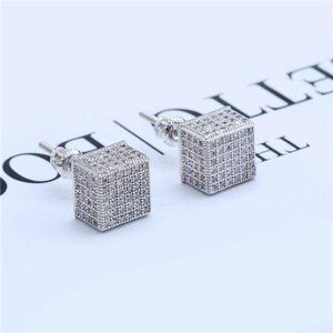 Silver Cube Studs: 925 Silver with Iced Simulated Diamonds