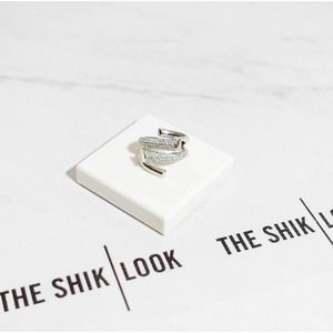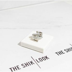 New | Silver Cubic Zirconia Multi-Stacked Crystal Geometric Adjustable Ring | NOT real silver or diamonds