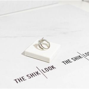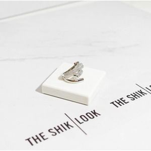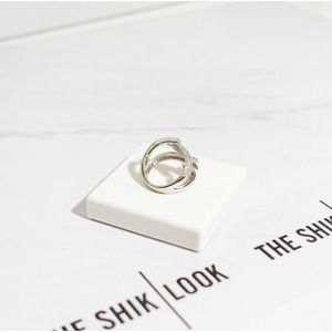 Silver Cubic Zirconia Crystal Geometric Adjustable Ring