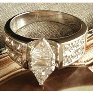 Silver Cubic Zirconia Solitaire Ring Size 10 Marquise Cut