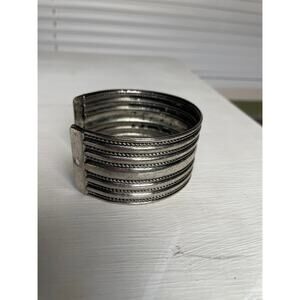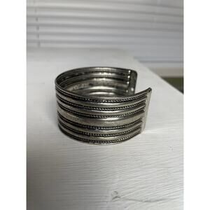 Silver Cuff Vintage Bracelet Rustic Western Wide Cuff Rope Ribs