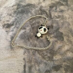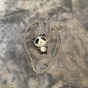 Silver Cute Large Panda Crystals Necklace