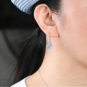 Handcarved Dandelion flower engraved textured dangle drop earrings.