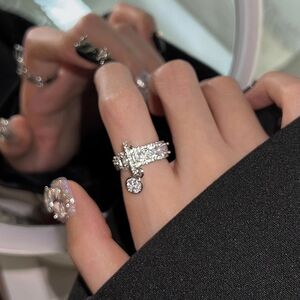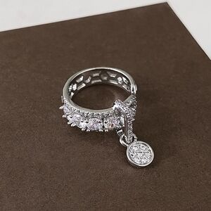 Silver Dangle Charm Size 7 Crystal Rhinestone Ring Finger Jewelry