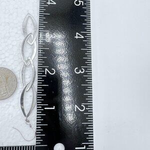Silver Dangle Drop Earrings 4.25" Long Chain Open Marquise Links Marked 925