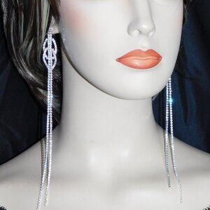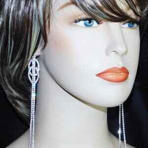 Silver Dangle Drop Earrings rhinestone Bridal party Stud Earrings 7.5" long