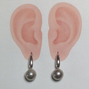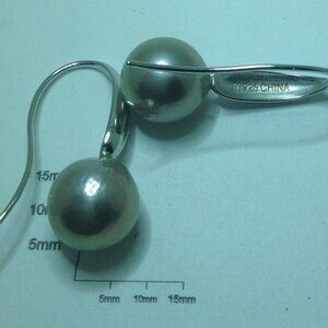 These stunning silver dangle earrings feature large spherical pearls that exude a lustrous sheen. The simple curved wire hooks enhance their classic minimalist design, making them a versatile accessory for any occasion.