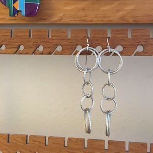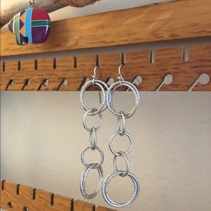 Connected hoops: dangley sparkly fun! Larger hoops top and bottom. Three smalls between = faith hope and love. Stay connected to your inner spirit! ✨