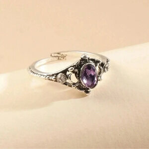 Silver Dark Purple Stone Ring