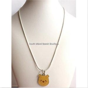 Silver Disney Winnie the Pooh Necklace 18" Bear Vintage Signed Charms Plated