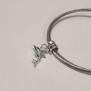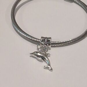 Silver Dolphin Dangle Charm for Pandora Style Bracelet