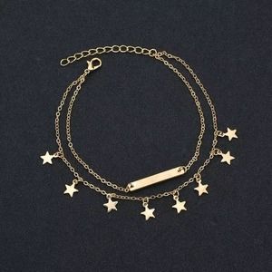 Silver Double Layered Star and Bar Summer Anklet Minimalist Cute NWT