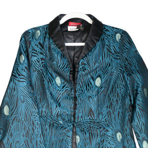Silver Dragon Blue Blazer Jacket Womens Size S Silk Cotton Blend Knot Button