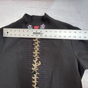 Silver Dragon De Oriental Classic Black Embroidered Jacket Gold Buttons Floral Trim XL