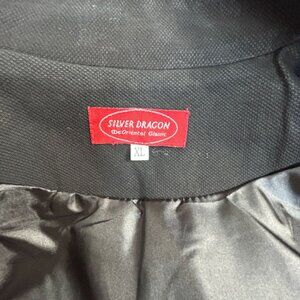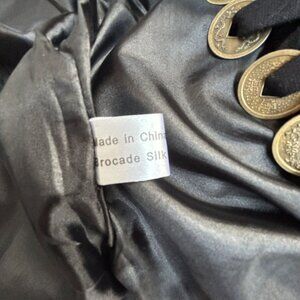 Silver Dragon De Oriental Classic Black Brocade Silk Jacket Gold Button Floral X