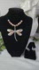 Silver Dragonfly Pendant Black Leather Cord Necklace Earrings Set New