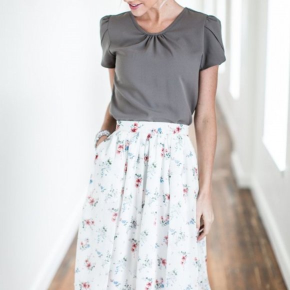 So so pretty! No details were spared on this one, with the gathered neckline and bell sleeves. Pair with your favorite silver jewelry.