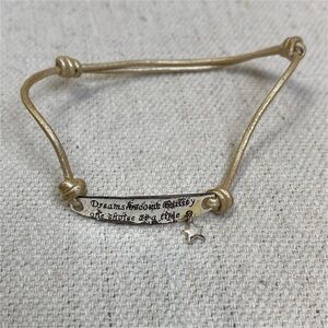 Adjustable leather cord bracelet with sterling silver plaque “dreams become reality one choice at a time” with a dangling star accent - gently worn, some tarnish - stamped 925 LA