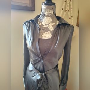 this is a beautiful two piece silver dress and slip. It's in great condition, doesn't fit anymore.