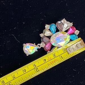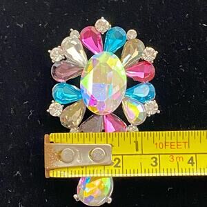 Colorful Dopamine Silver Drop Crystal Rose Flower BROOCH Pin Badge Diamante Rhinestone Corsage