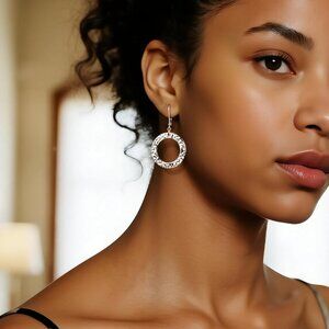 Silver Drop Handmade Hammered Circle Round Dangle Minimalist Earring for Women
