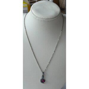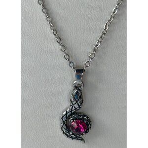 Silver Earring & Necklace Set w/Pink Stones Snake Theme (NWOT)