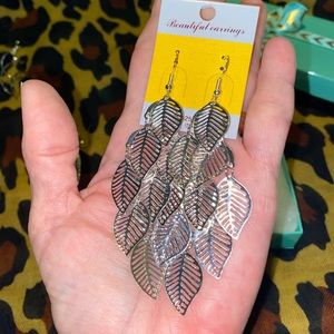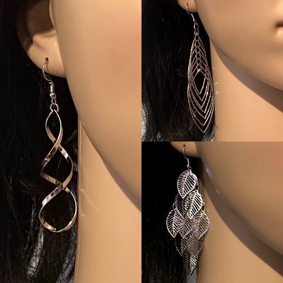 Silver fashion trendy earring set, all earrings are new without tags never worn. Earrings measure 3” to 4 1/4” large and beautiful earrings, very light weight. NWOT comes with gift box.