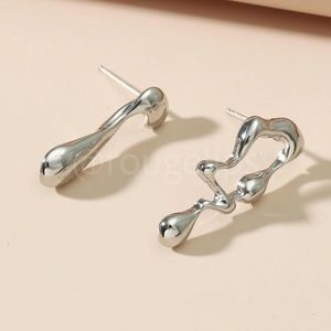 Silver Earrings Irregular Abstract Shape Asymmetric