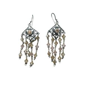 These exquisite silver 925 earrings showcase a stunning Citrine gem, with intricate filigree and cascading pink beaded strands that create a captivating chandelier effect. The artisanal craftsmanship and bohemian-inspired design make them a versatile accessory for any occasion.