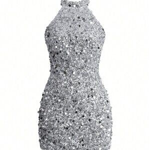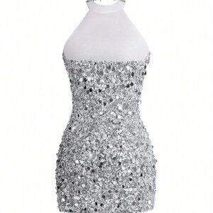 Silver Elegant Women's halter Collar Sexy Sleeveless ho9lidaySequin
