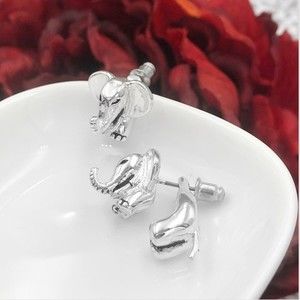 🌼 Silver Elephant Peek-a-boo Front Back Body Stud Earrings