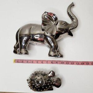 Silver Elephant & Puffer Fish Figurines Decorative Set