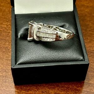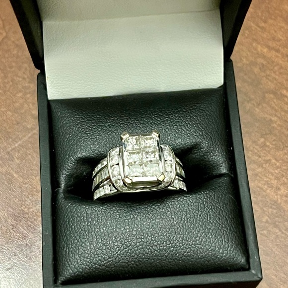 Silver Engagement Ring with Princess-Cut Diamond and Halo Design