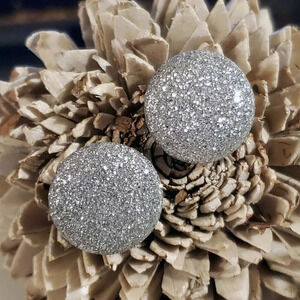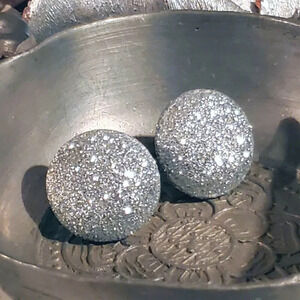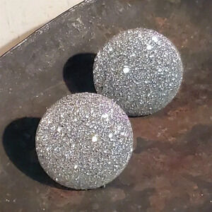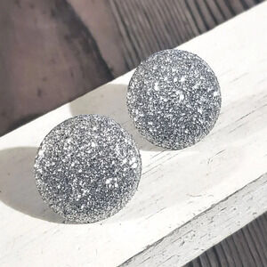 Silver Fabric Button Earrings Retro 80s Club Glam Disco Sparkly