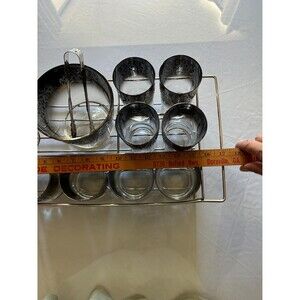 This is a vintage mcm barware set consisting of an ice bucket with tongs, 4 cocktail highball glasses, 4 rocks lowball glasses, 1 shot glass (missing 1 shot glass) with carrier. This is in excellent condition for its age and would be a collectors dream set.