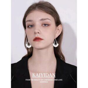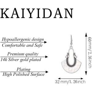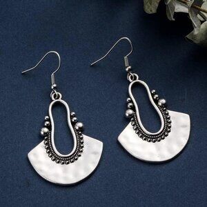 Silver Fan Dangle Boho Dangle Statement Vintage Dainty Earring for Women