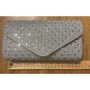 Silver Fashion Glitter Fabric Clutch Bag With Rhinestones. Has changed throughout can be worn as a clutch or a shoulder bag.