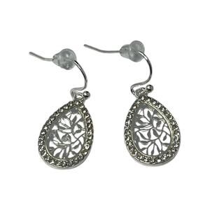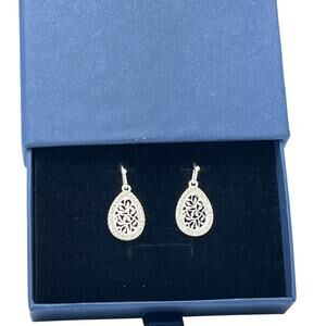 Silver Filigree Teardrop Earrings with Swarovski Crystals NWT