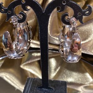 Silver Filigree large hoop pierced earrings! Clean with silver cleaner!