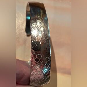 Elegant silver bracelet featuring a unique fish design. Perfect for adding a touch of sophistication to any outfit.