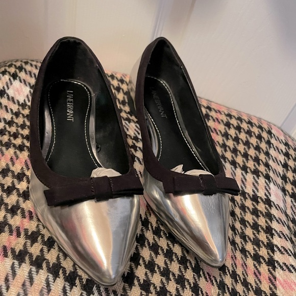 Semi used wonderful condition silver and black suede small bow on top very very comfortable will ship ASAP