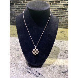 Abstract design with twist style necklace. Please see pics for condition and estimated measurements. In gently used condition. Please see my other listings, will bundle with other items to save on shipping