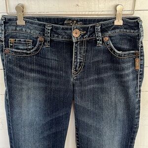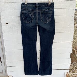 These jeans are in great condition. They are bootcut and have been professionally hemmed to 31”. The waist measures 15” while lying flat. Non smoker home.