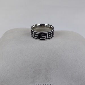Stylish silver and black ring with a geometric pattern. Stainless steel. Perfect for any occasion.